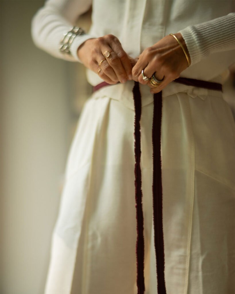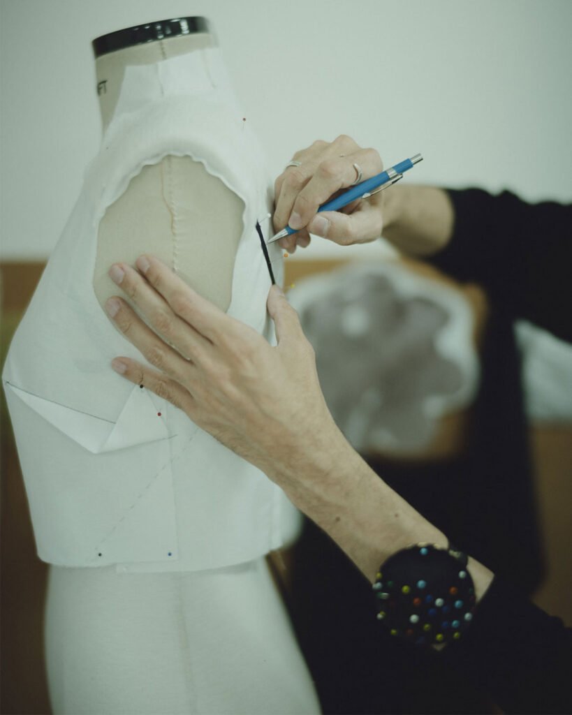O fervilhante ateliê se desdobra ao propor uma nova alfaiataria, repleta de boas surpresas. A valorização do trabalho manual e a costura meticulosa são o ponto de partida não só para um vestir com rigor, mas para novas experiências. Por isso, fez-se necessária a criação de uma equipe interna dedicada apenas à finalização e aos acabamentos — parte essencial da construção de uma peça, tal qual a modelagem no corpo.