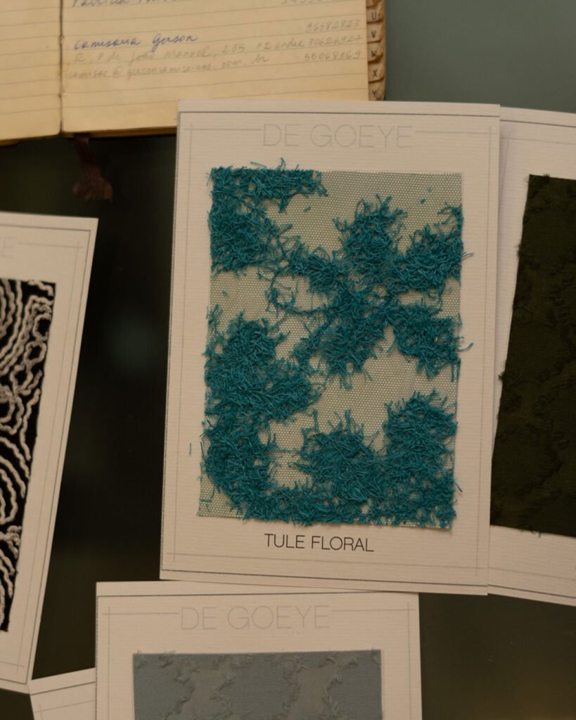 Dentro desse infinito particular, ainda há espaço para nobres tecidos — e lugar cativo para a sustentabilidade, tarefa mais que necessária nos dias de hoje. Na DE GOEYE, todos eles são usados do começo ao fim: não há margem para desperdício quando o assunto é excelência e cuidado com a matéria-prima. Os retalhos remanescentes de nossa produção são utilizados em projetos e parcerias com foco em reuso dentro da moda. Após destinar os retalhos a todas as possibilidades de uso, caso ainda reste algum resíduo remanescente, este é destinado a uma empresa especializada em tecidos desfibrados.